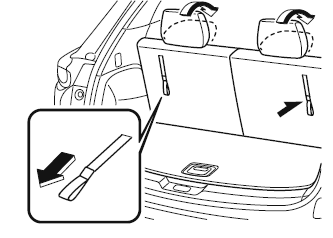 Foldable Head Restraints (Third-Row Seat) The third-row seats are equipped with foldable head restraints. NOTE The foldable head restraints cannot be adjusted or removed. (With strap) To fold the head restraint, pull the strap and fold the head restraint downward.